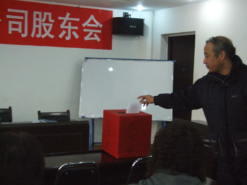 11月27日9時(shí),公司物貿(mào)大廈五樓會(huì)議室召開(kāi)股東會(huì),選舉第三屆董事會(huì)、監(jiān)事會(huì)。公司股東代表除有一名請(qǐng)假外,其余全部到會(huì)。大會(huì)由**屆董事會(huì)聘任的常務(wù)副總經(jīng)理李建軍主持。