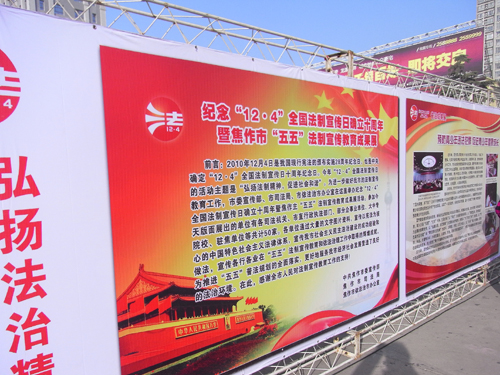 2010年12月4日,紀(jì)念“12.4”全國(guó)法制宣傳日確立10周年活動(dòng)在東方紅廣場(chǎng)舉行,舊車經(jīng)營(yíng)部積極響應(yīng),大力弘揚(yáng)法治精神,促進(jìn)社會(huì)和諧。