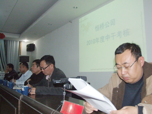 2010年12月9日,公司在物貿(mào)會議室召開本年度中層干部測評會。會議由監(jiān)事會主席姬中勝主持,物資局政工科科長金靜蒞臨指導。 22位中層干部對自己本年度的工作進行述職后,全體員工對其予以評議打分。監(jiān)事會主席姬中勝強調(diào)大家要以公正、客觀的心態(tài)認真對中干進行打分。