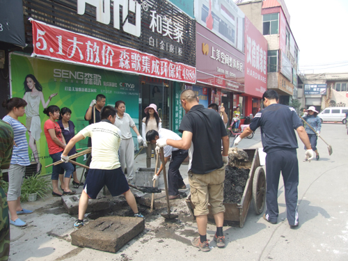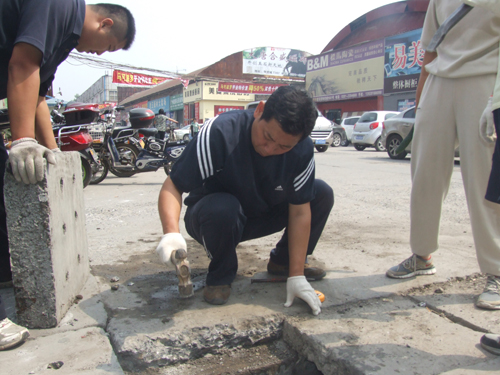 在雨季即將來臨之際,舊車市場組織了一次清淤排污義務(wù)勞動(dòng)。5月18日清晨7點(diǎn)半,全體員工準(zhǔn)時(shí)到達(dá)市場,在領(lǐng)取了鐵鏟,撬杠等工具后,開始了水渠清理。