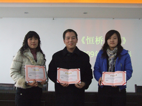 2009年12月18日,恒橋之聲2009年度表彰總結(jié)會在物貿(mào)會議室召開,會議由副總經(jīng)理原躍作主持,信息部馬利軍代表恒橋之聲編輯組對09年度恒橋之聲工作進(jìn)行總結(jié)。會上對個人和部門來稿前三名分別進(jìn)行了頒獎。